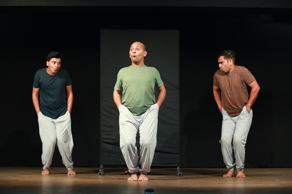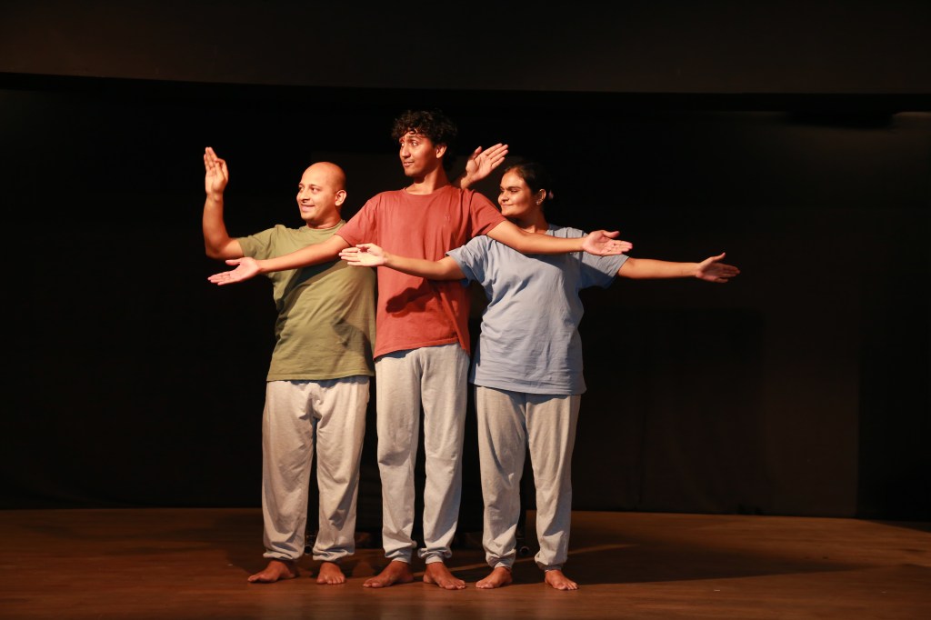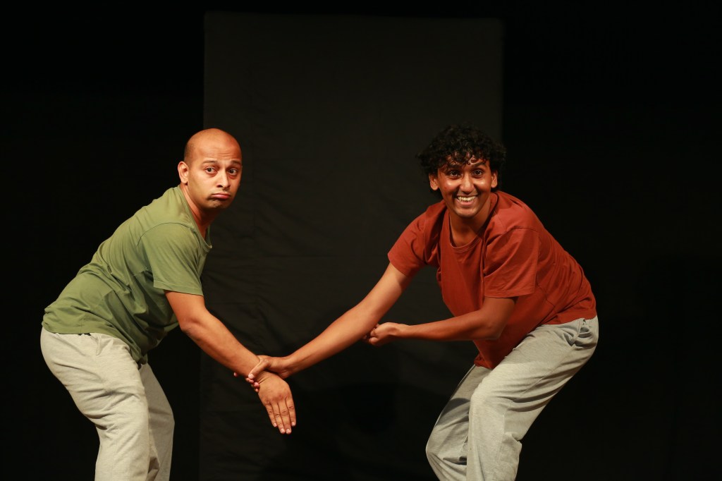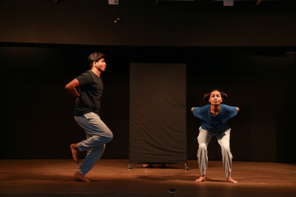 At daybreak the birds begin to play, a game of tickling the tree, and as the day passes everyone plays. This play is told through physical movements and vocalizations. We see performers emulate animals commonly seen in an Indian Village setting: Roosters, Cows, Cranes, Goats, Cats, and Owls. Each animal is caught in a state of play with other animals. And they play the games that children play!